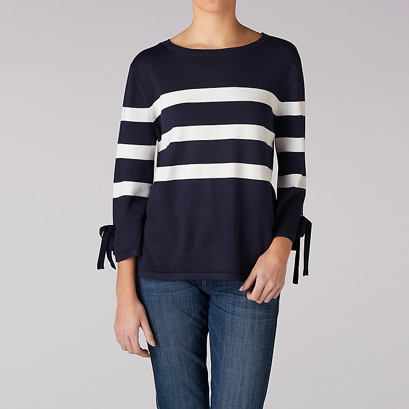 Lee Stripe Pull Over Sweater With Sleeve Ties